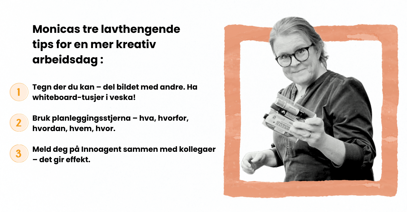 Jeg ble utfordret som person, måtte skikkelig ut av komfortsonen. Ice-breakerne var ekle, men magiske. Jeg erfarte hvor mye energi og trygghet som oppstår når vi bjuder på, forteller Monica om Innoagent.