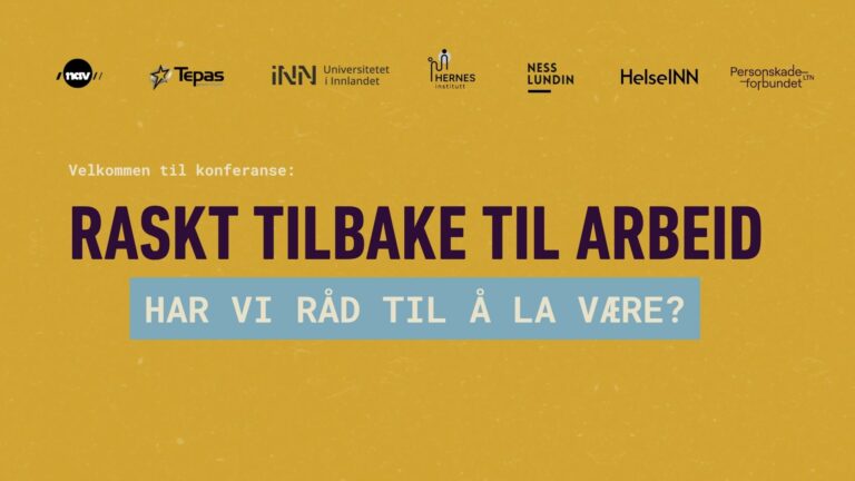 15:00 Panelsamtale og avslutning (ledes av Ingvar Midthun og Hilde Nitteberg Teige fra Hernes Institutt) med Irene Stengrundet (Tepas Kompetanse), Linn Alicia Kristiansen(NHO), Per Oretorp (Personskadeforbundet) og brukerrepresentant fra Hernes Institutt