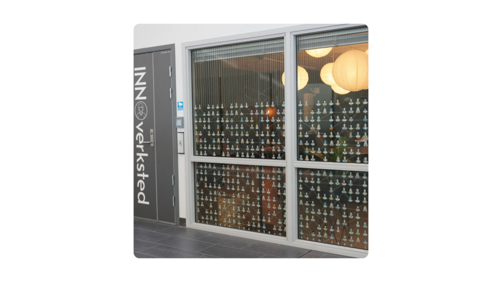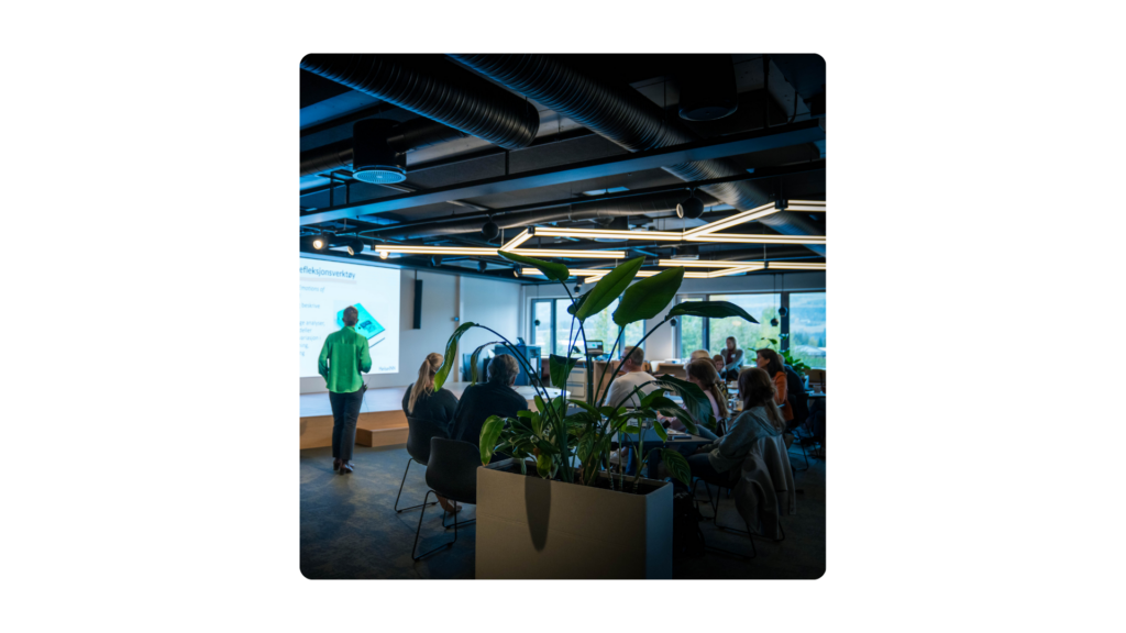 Våre verksteder og samarbeidsarenaer er skapt for praktisk innovasjonsarbeid: store flater, whiteboards, skjermer, fleksibel møblering og utstyr som gjør det enkelt å tenke nytt og jobbe sammen. Her får du rom som støtter både idéutvikling, visualisering, dialog og testing.