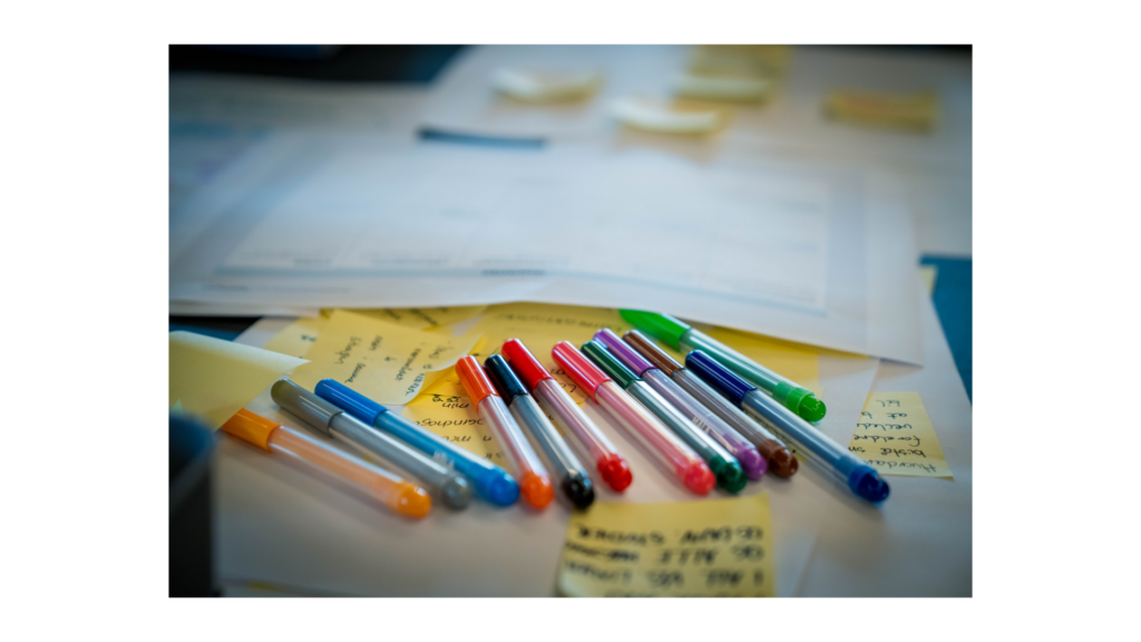 Vi tilbyr en rekke kurs, både digitalt og fysisk, slik som intro- og dybdekurs i designdrevet innovasjon, og hvordan samarbeide digitalt.